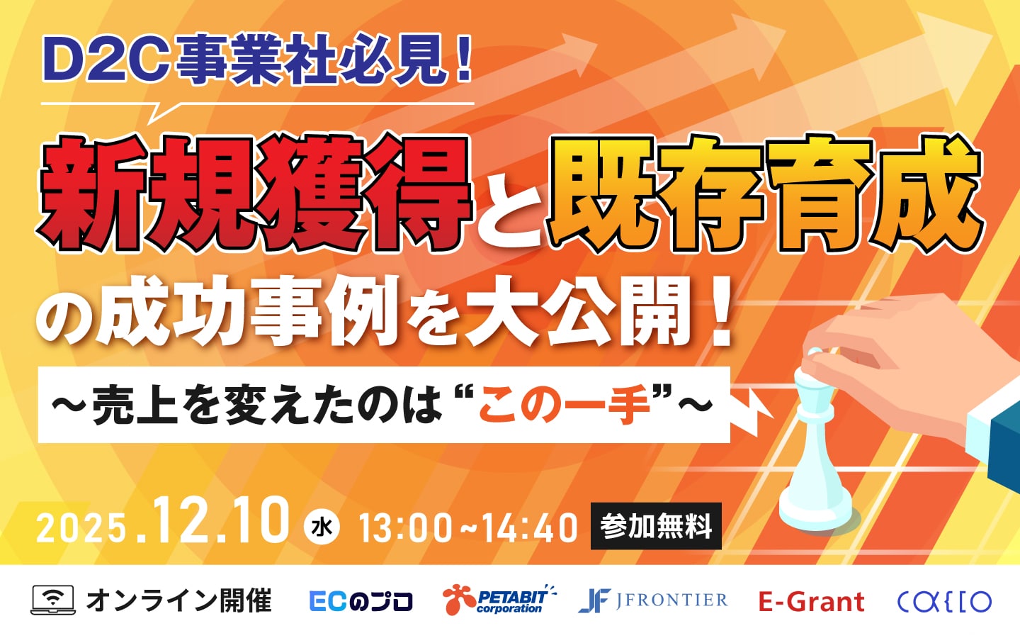 本セミナーでは各社が、実際に売上を大きく伸ばしたD2Cブランドの“勝ちパターン”を初公開。新規獲得から顧客育成まで、売上のボトルネックを解消した具体策を、事例ベースでわかりやすく解説します。
